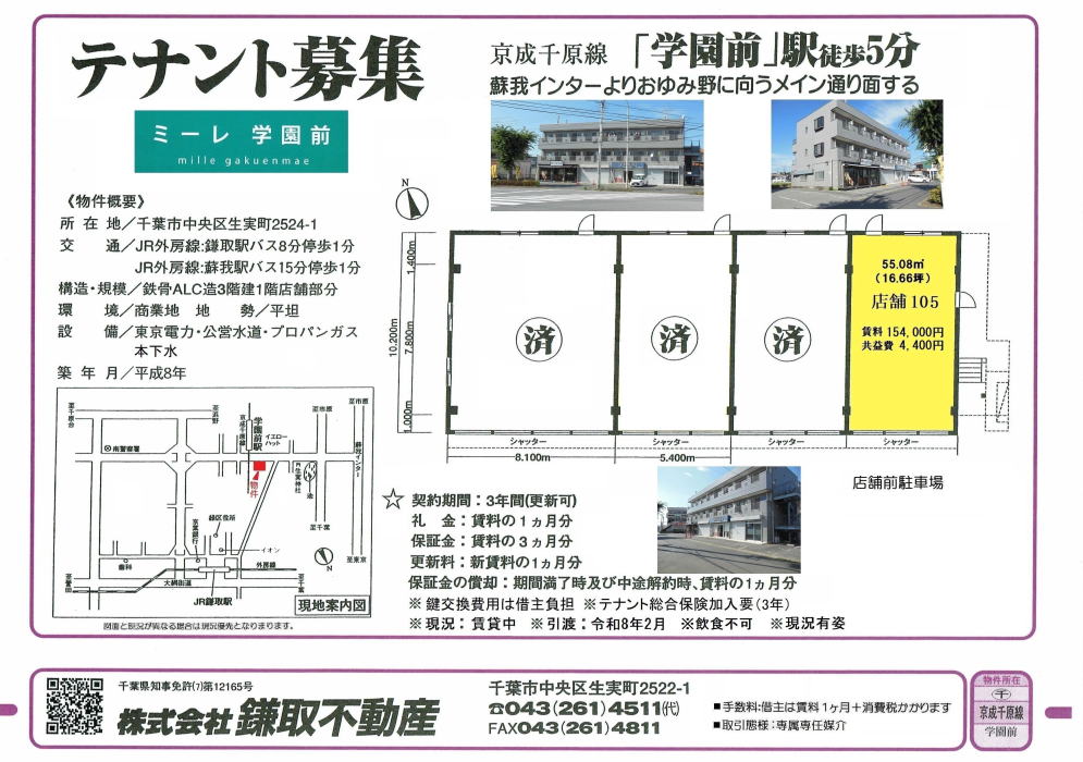 京成千原連「学園前」駅徒歩5分 ☆蘇我インターからおゆみ野に向かうメイン通り♪