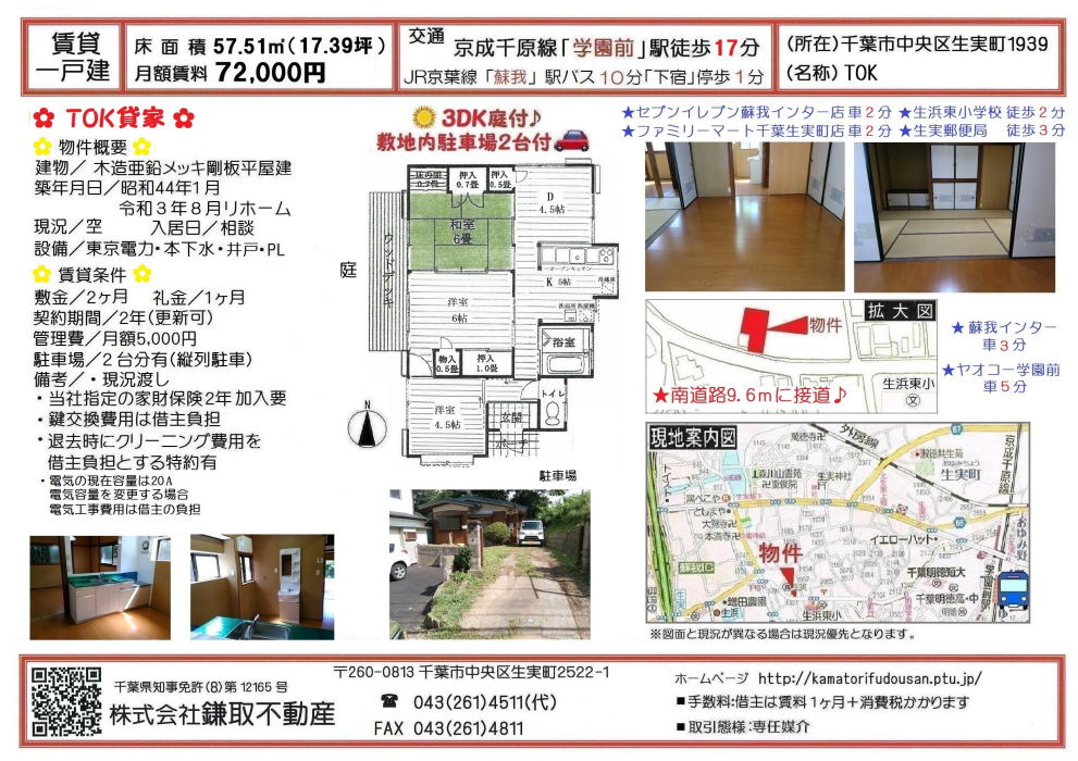 ☆ 生浜東小学校 徒歩2分 ☆ 生実郵便局 徒歩3分